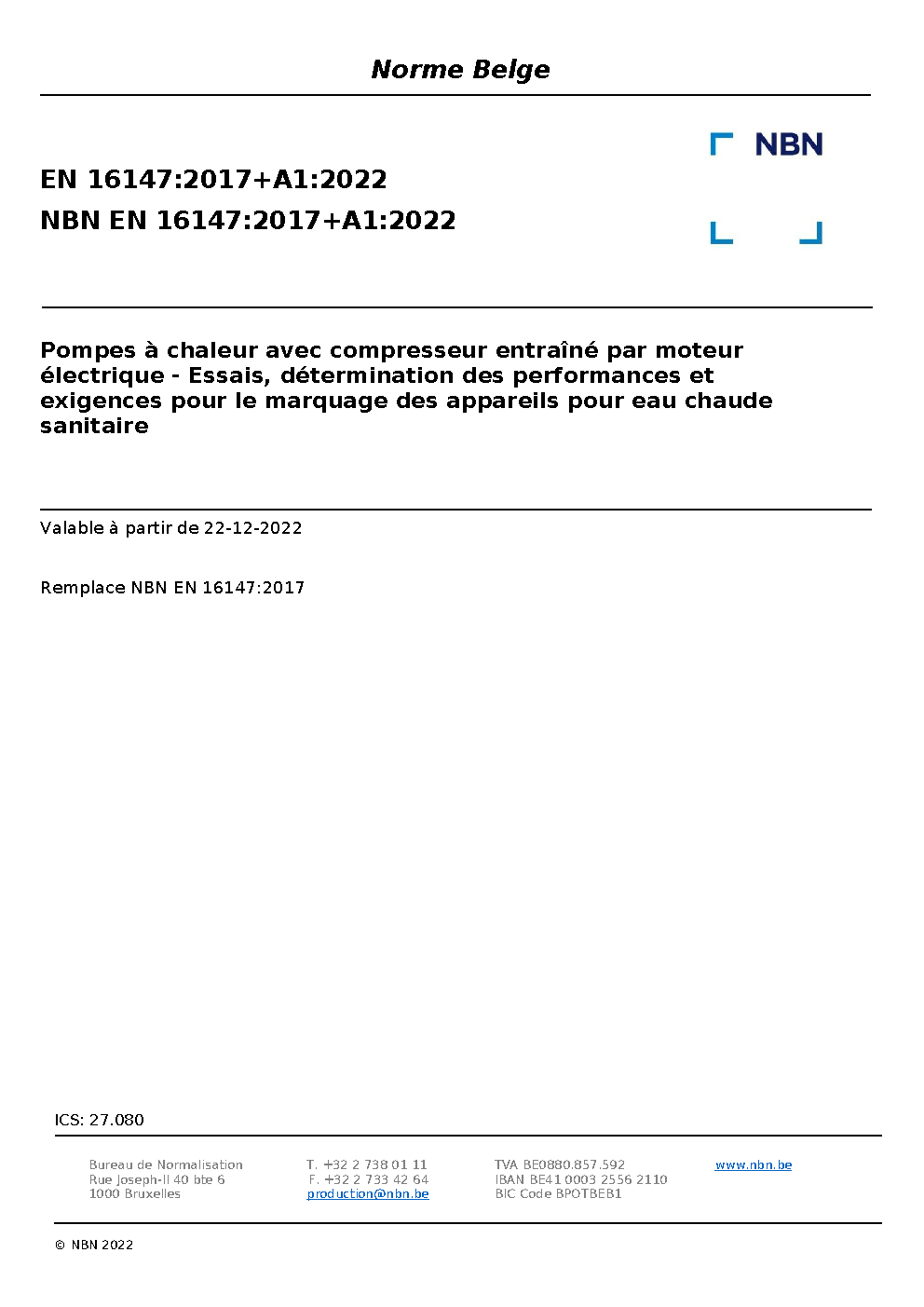 | Publisher | Bureau de Normalisation Belge (NBN) |