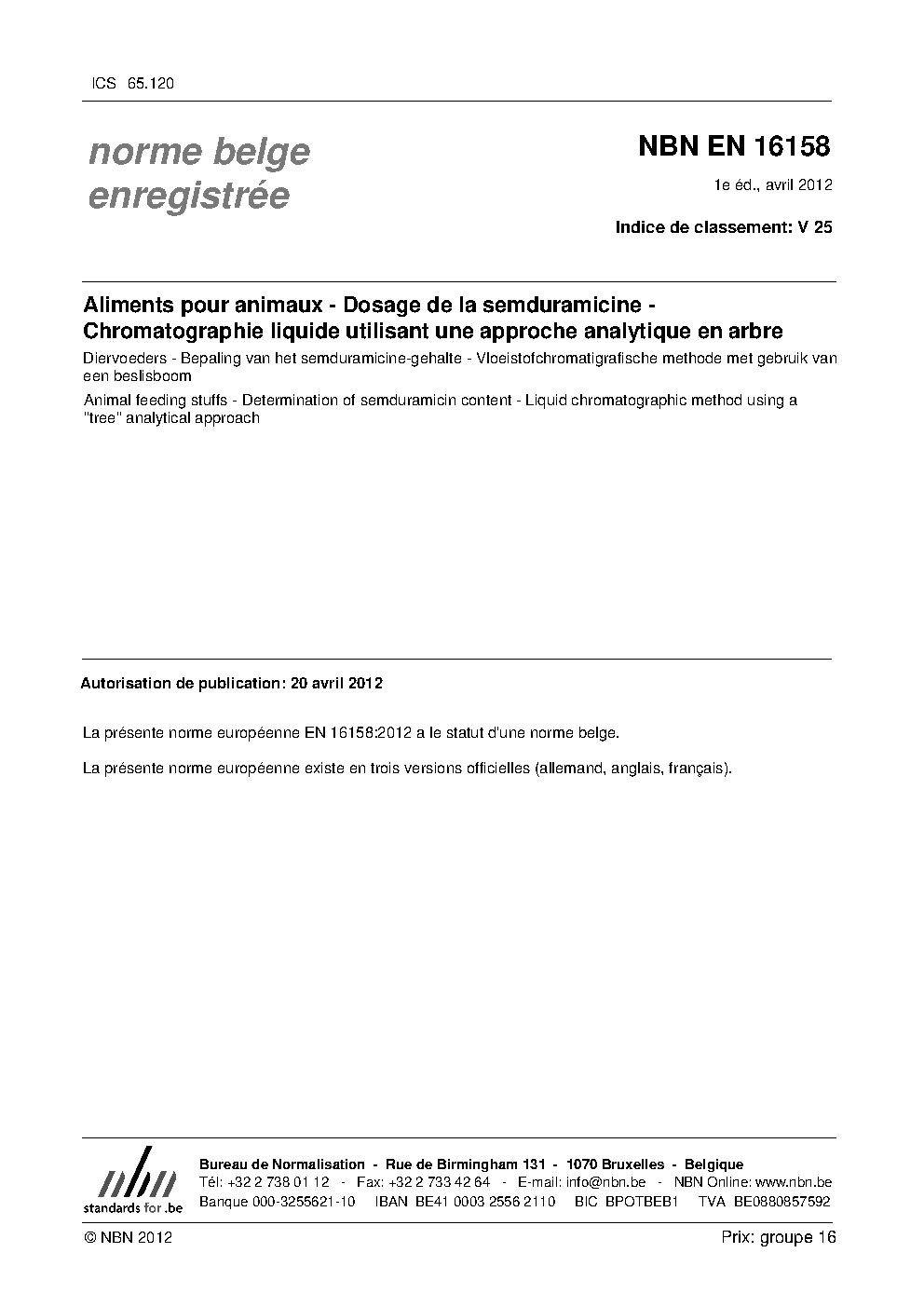 | Publisher | Bureau de Normalisation Belge (NBN) |
