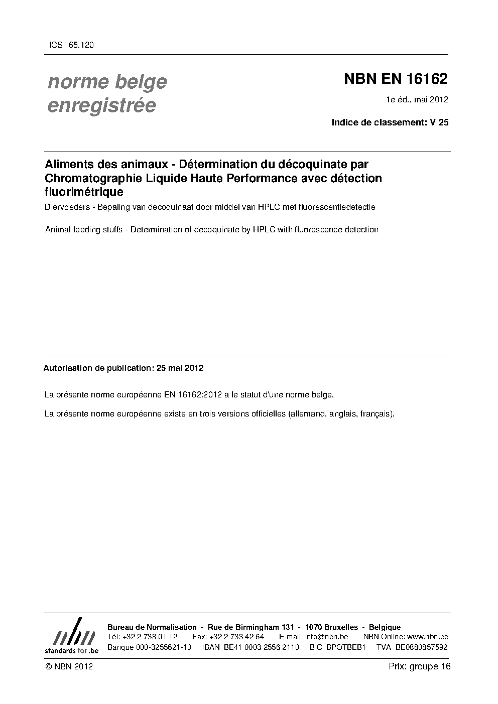 | Publisher | Bureau de Normalisation Belge (NBN) |
