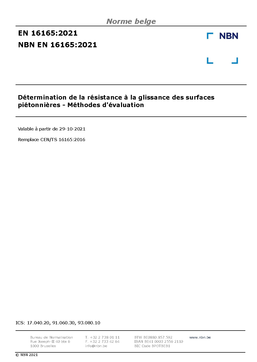 | Publisher | Bureau de Normalisation Belge (NBN) |