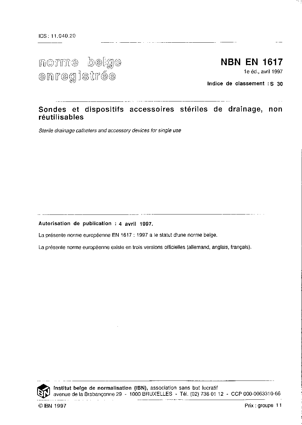 | Publisher | Bureau de Normalisation Belge (NBN) |