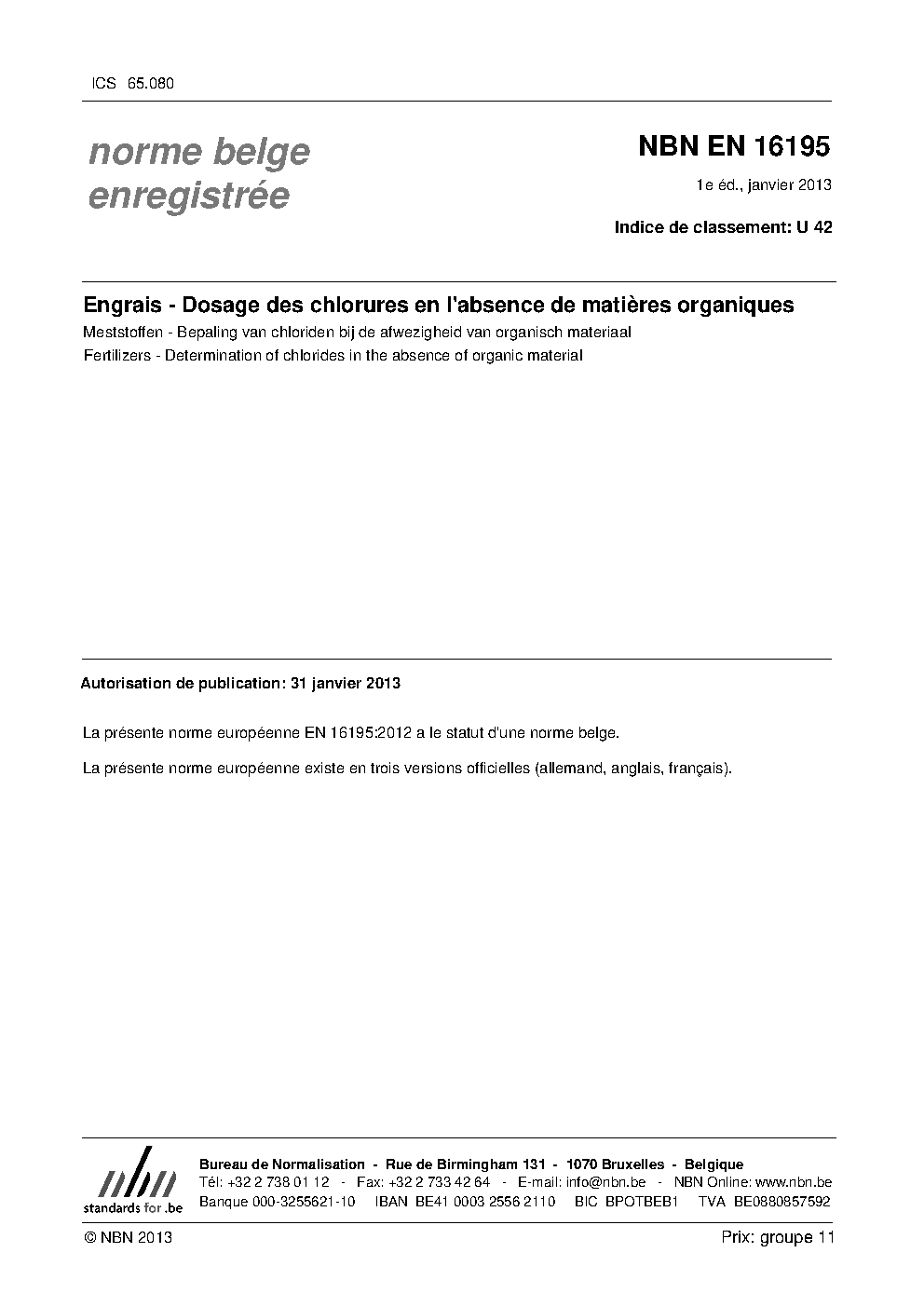 | Publisher | Bureau de Normalisation Belge (NBN) |