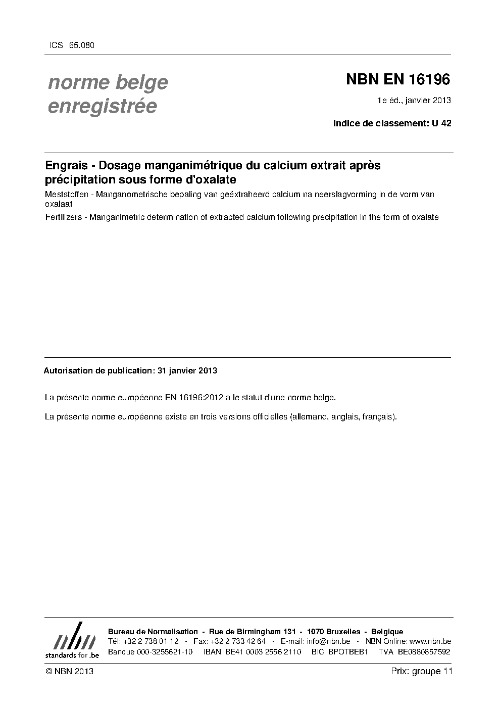 | Publisher | Bureau de Normalisation Belge (NBN) |