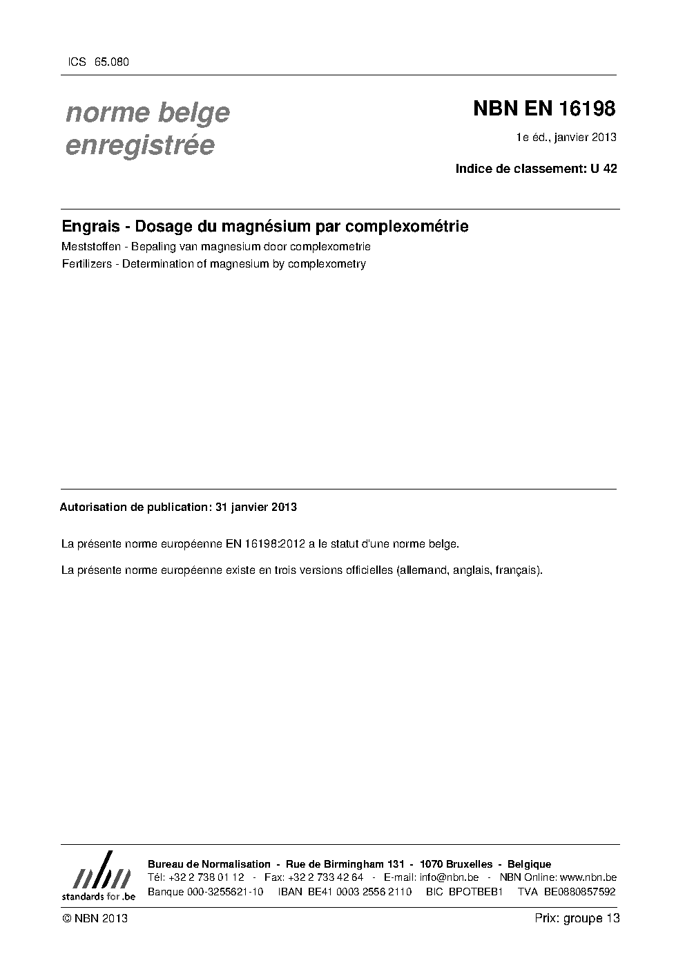 | Publisher | Bureau de Normalisation Belge (NBN) |
