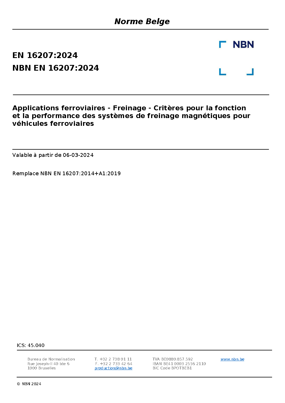 | Publisher | Bureau de Normalisation Belge (NBN) |