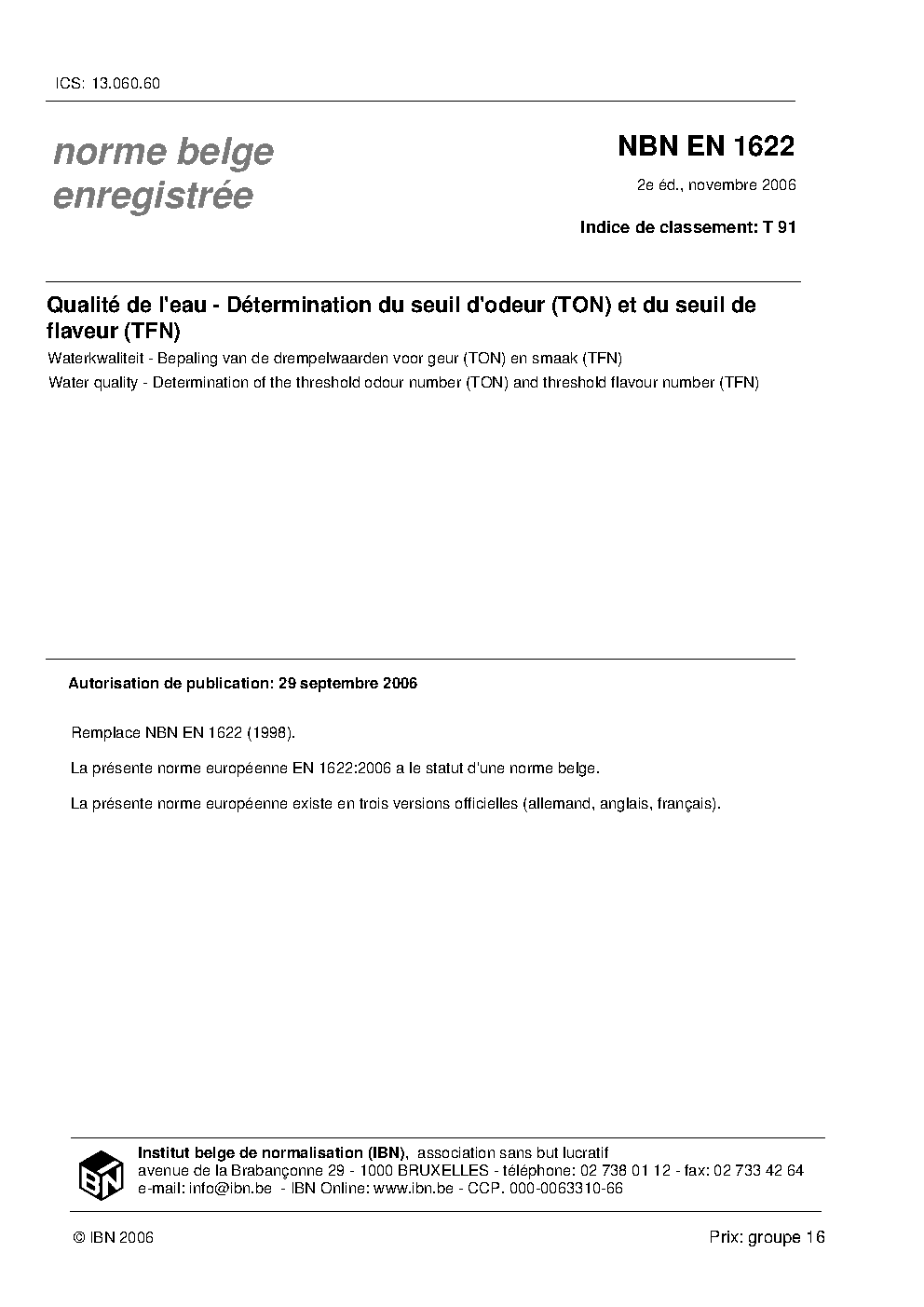| Publisher | Bureau de Normalisation Belge (NBN) |