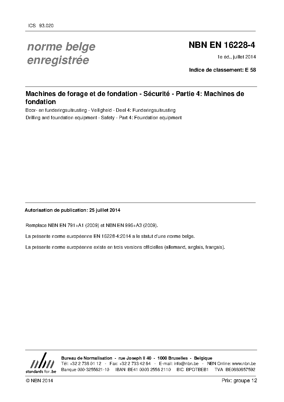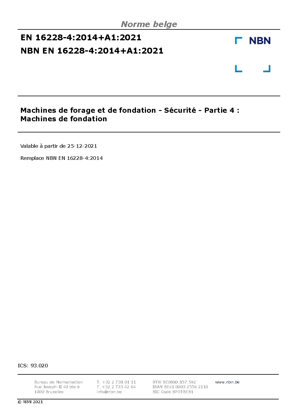 | Publisher | Bureau de Normalisation Belge (NBN) |