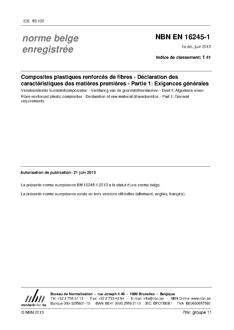 | Publisher | Bureau de Normalisation Belge (NBN) |