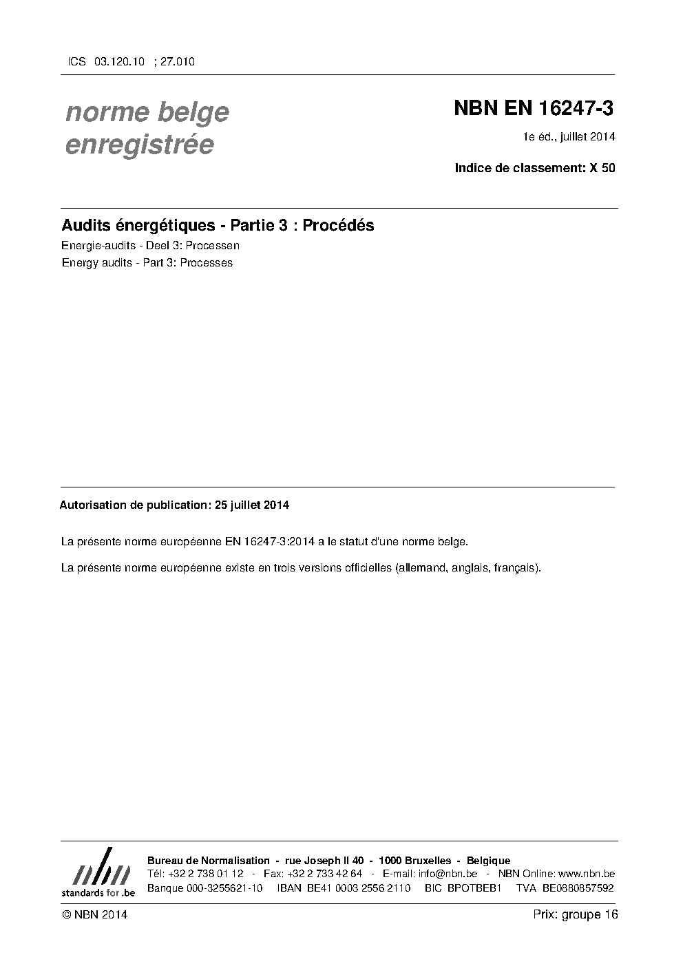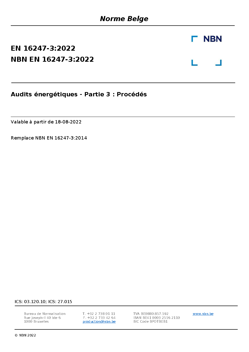 | Publisher | Bureau de Normalisation Belge (NBN) |