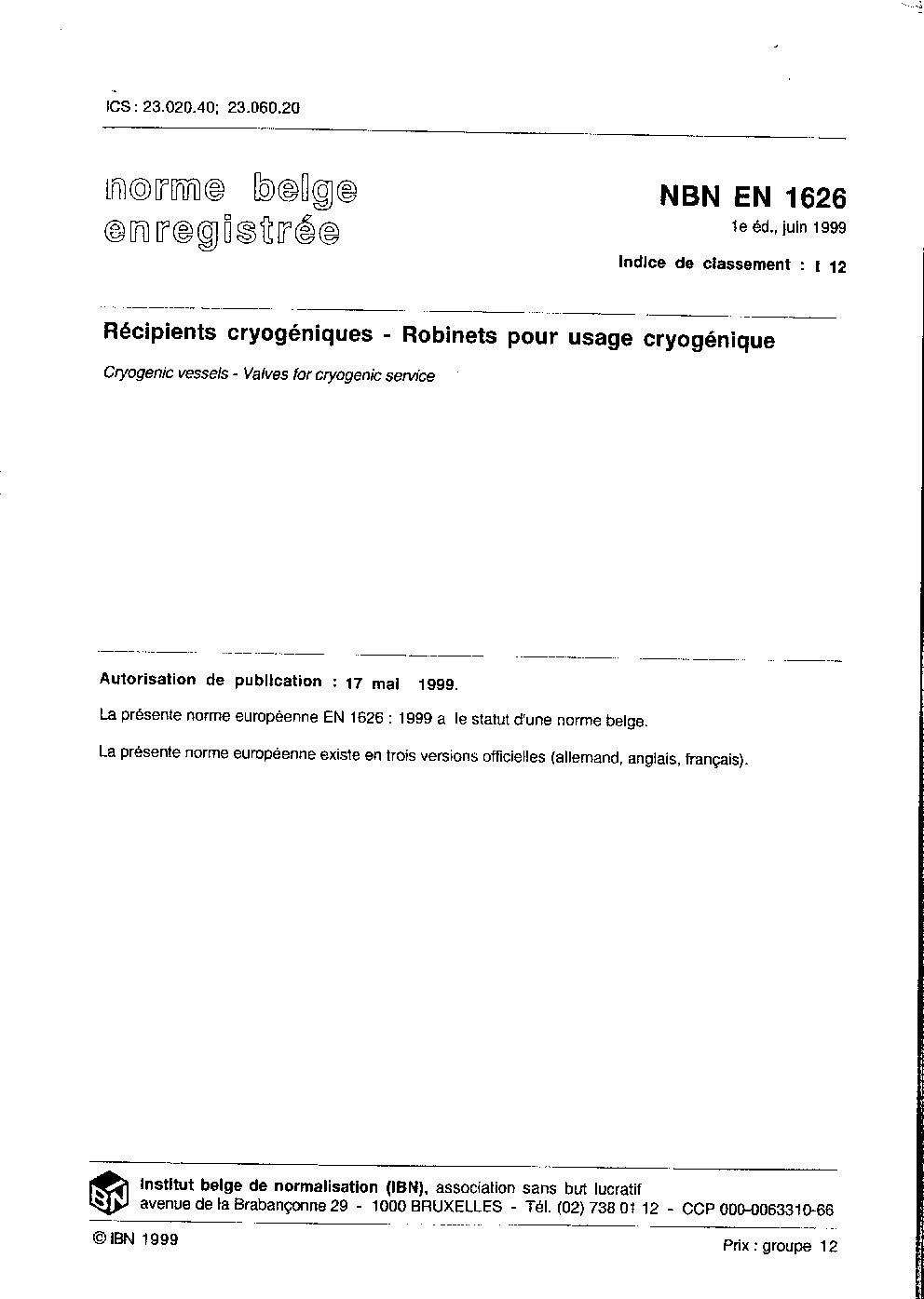 | Publisher | Bureau de Normalisation Belge (NBN) |