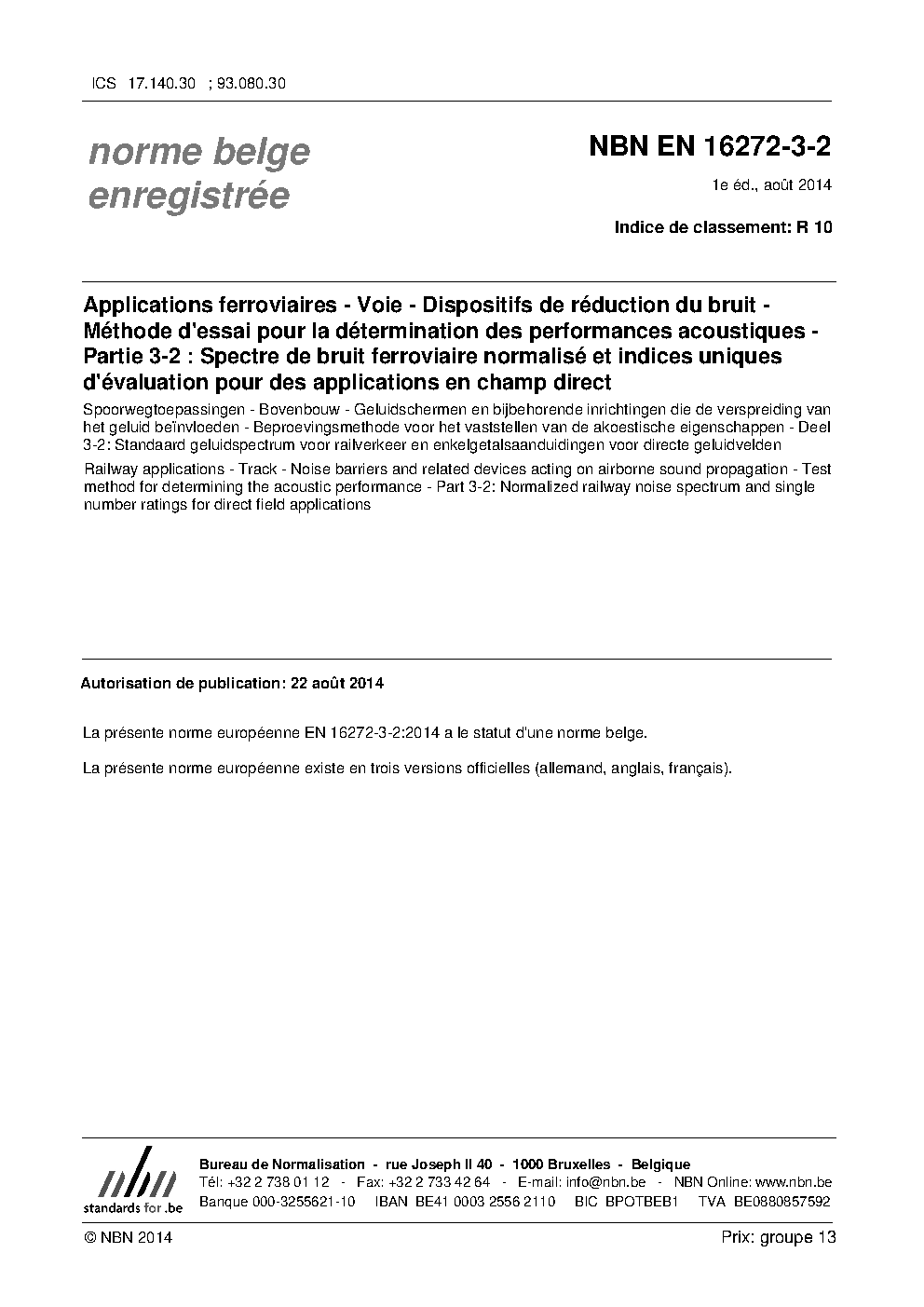 | Publisher | Bureau de Normalisation Belge (NBN) |