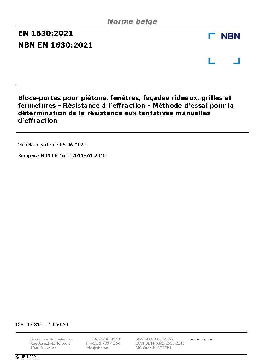 This European Standard specifies a test method for the determination of resistance to manual burglary attempts in order to assess the burglar resistant characteristics of pedestrian doorsets, windows, curtain walling, grilles and shutters. It is applicable to the following means of opening: Turning, tilting, folding, turn-tilting, top or bottom hung, sliding (horizontally and vertically) and rolling as well as fixed constructions.