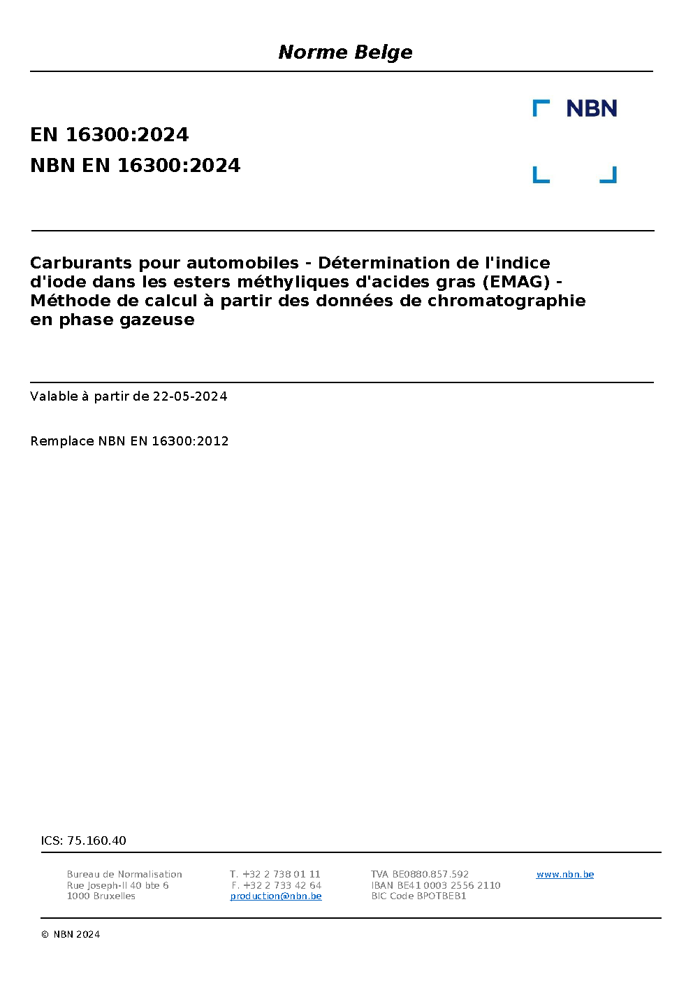 | Publisher | Bureau de Normalisation Belge (NBN) |