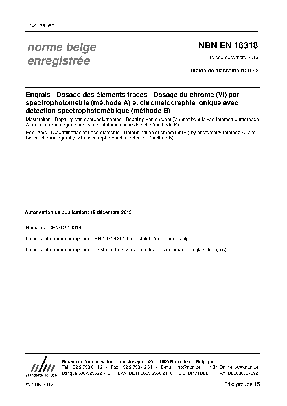 | Publisher | Bureau de Normalisation Belge (NBN) |