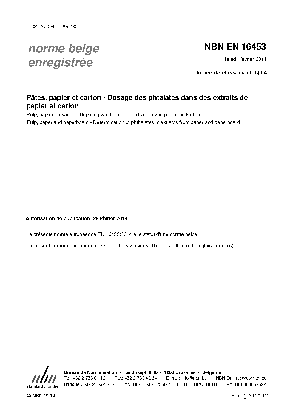 | Publisher | Bureau de Normalisation Belge (NBN) |