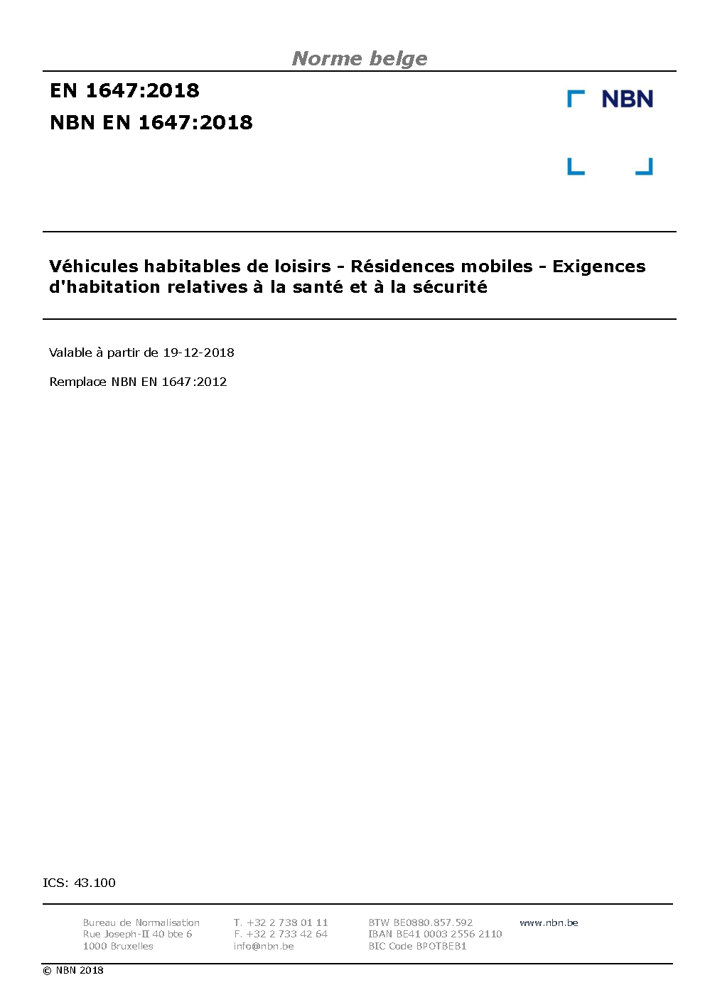 | Publisher | Bureau de Normalisation Belge (NBN) |