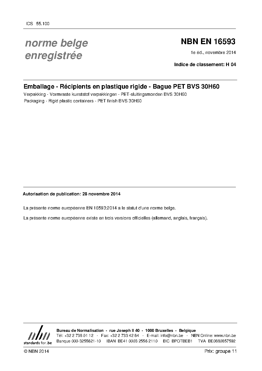 | Publisher | Bureau de Normalisation Belge (NBN) |