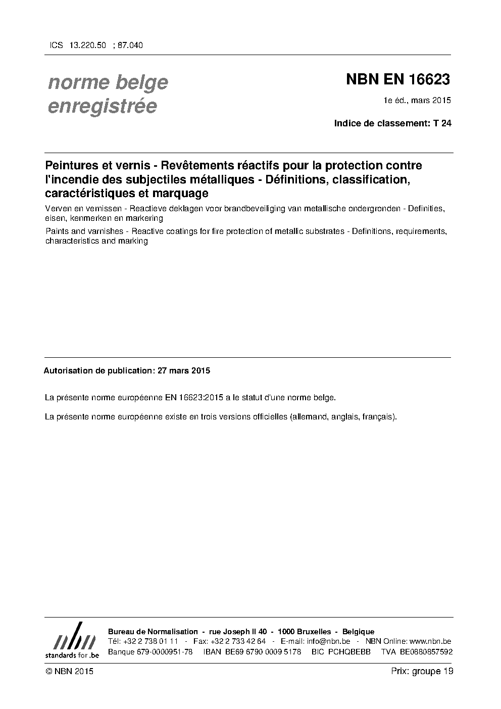 | Publisher | Bureau de Normalisation Belge (NBN) |