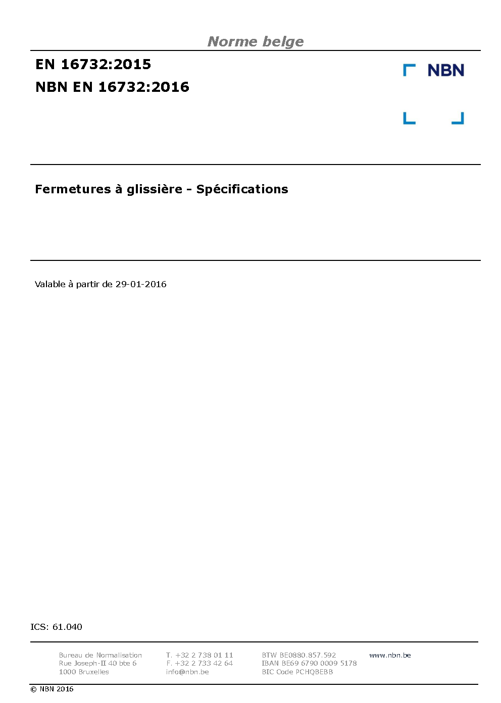 | Publisher | Bureau de Normalisation Belge (NBN) |