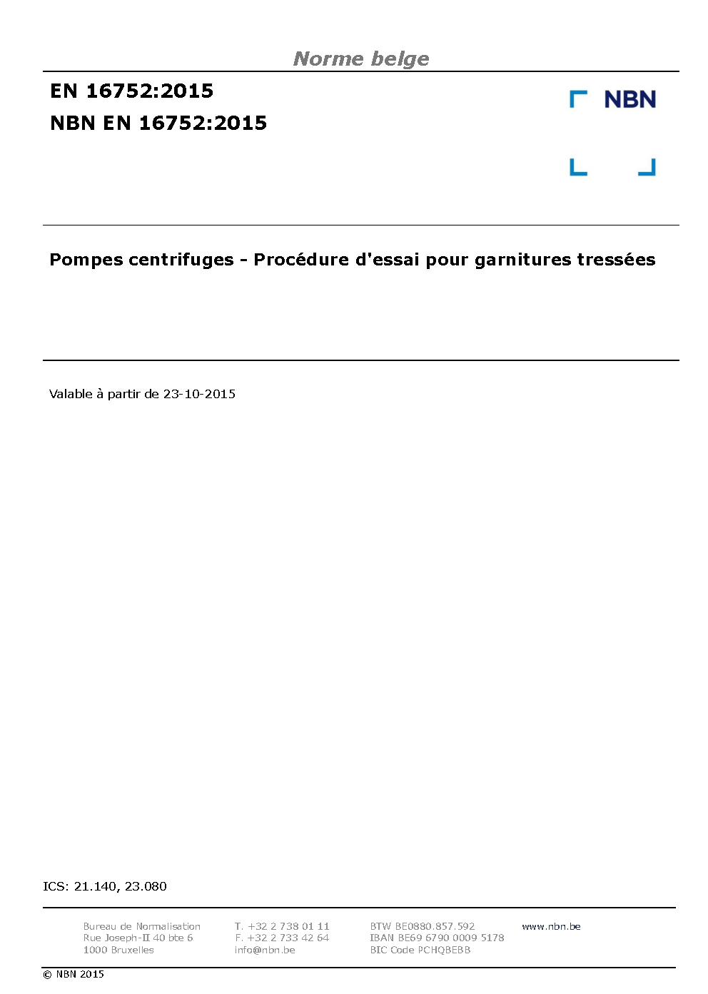 | Publisher | Bureau de Normalisation Belge (NBN) |