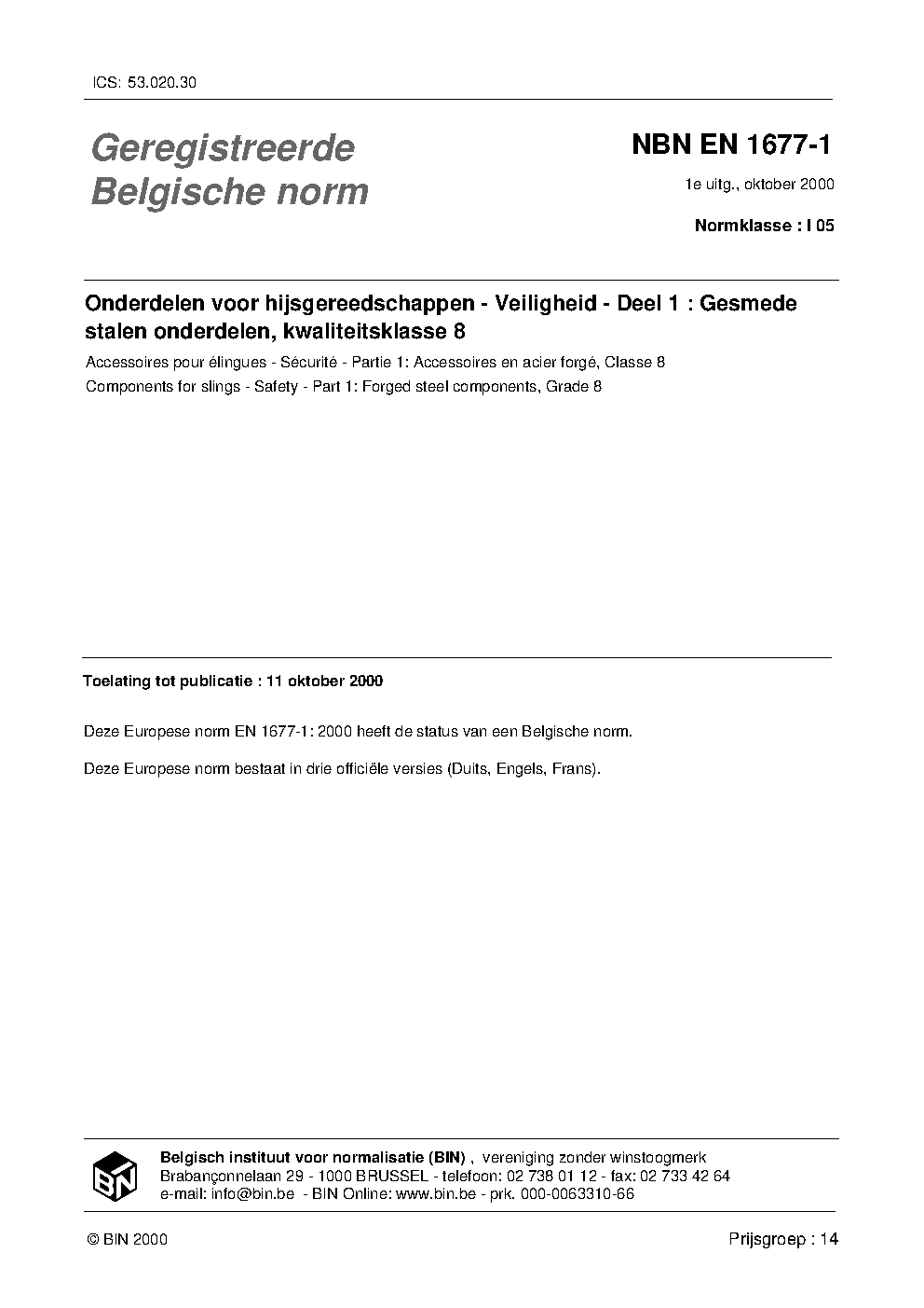 | Publisher | Bureau de Normalisation Belge (NBN) |