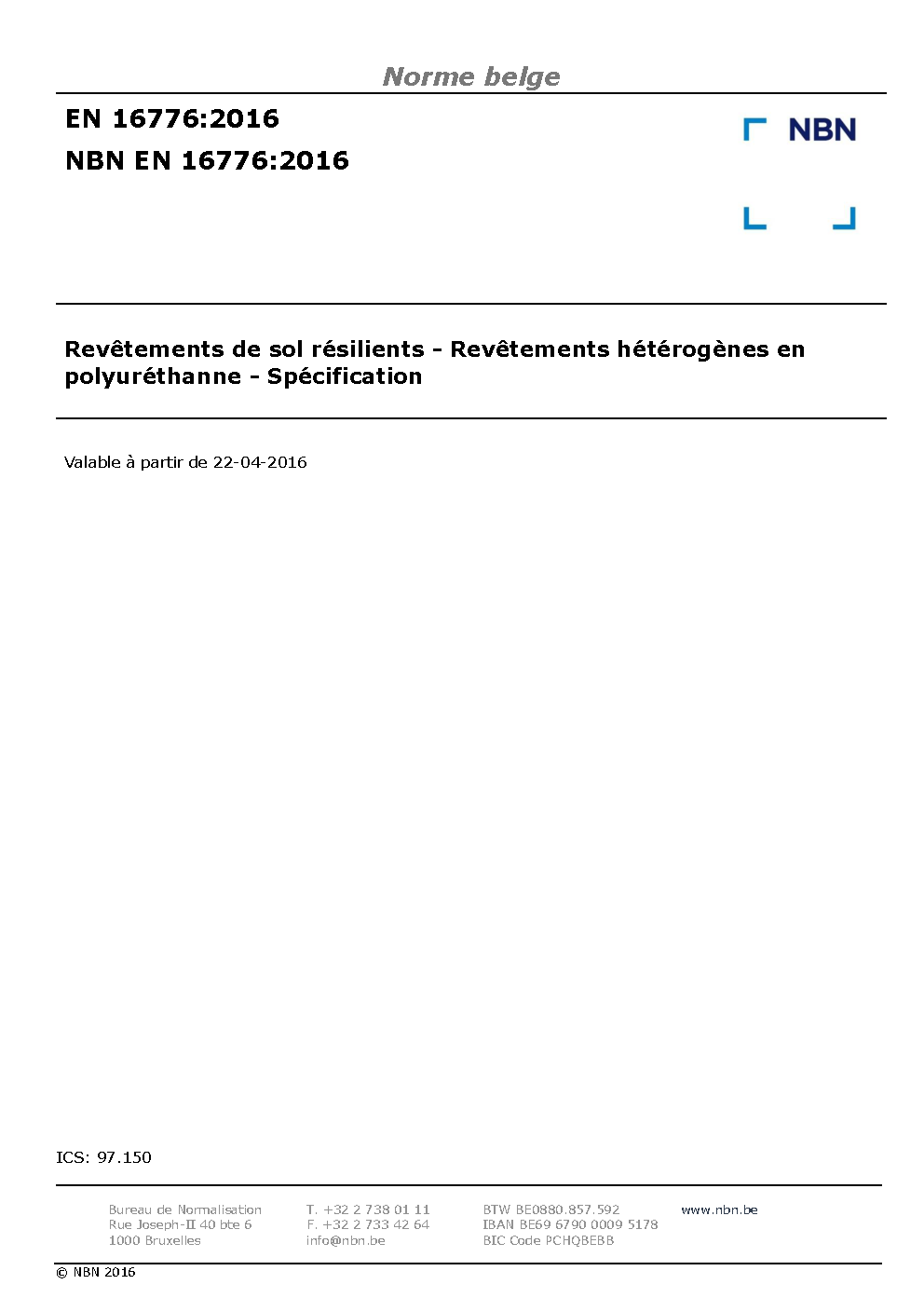| Publisher | Bureau de Normalisation Belge (NBN) |