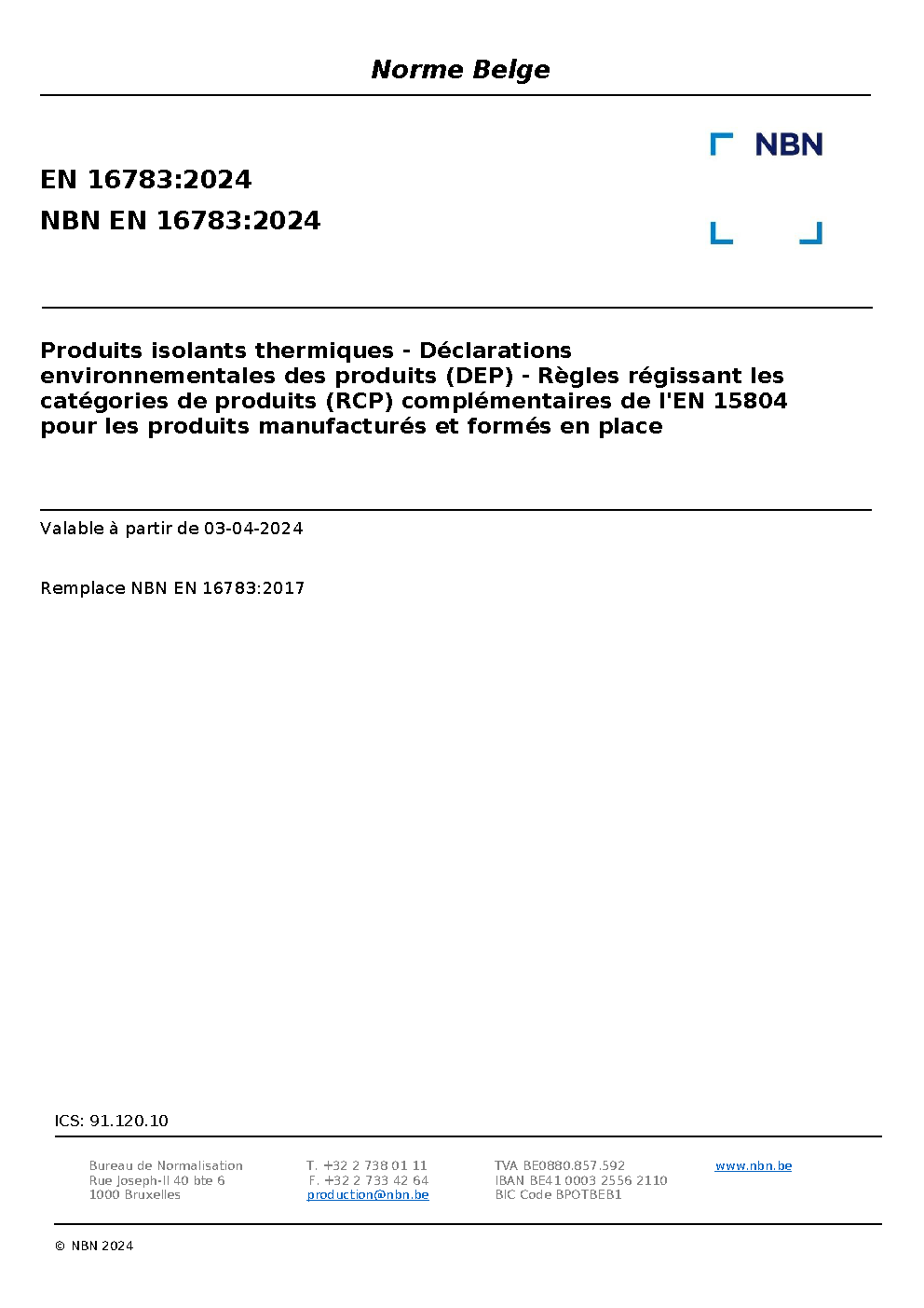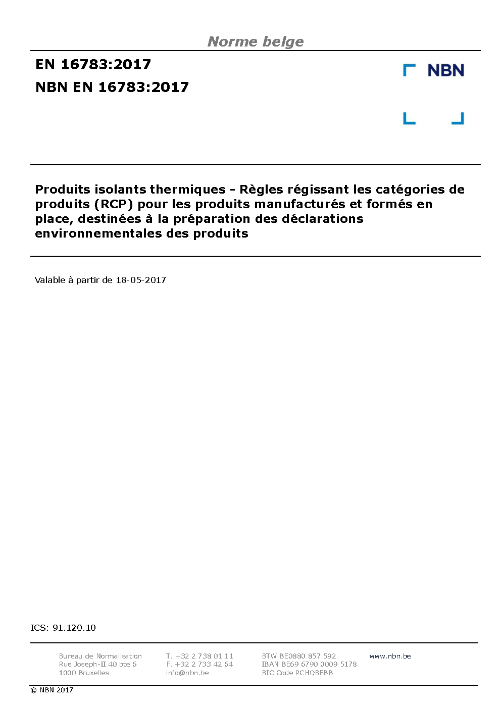 This European Standard provides the product category rules (PCR) for Type III environmental declarations (as in EN 15804) for factory made and in situ thermal insulation products.