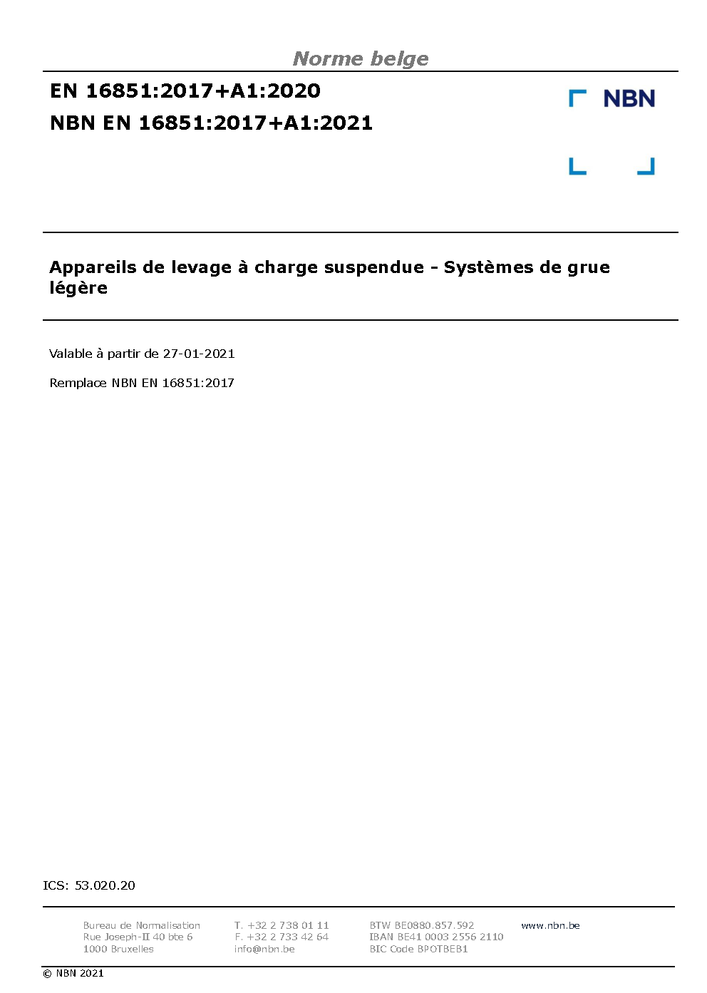 | Publisher | Bureau de Normalisation Belge (NBN) |