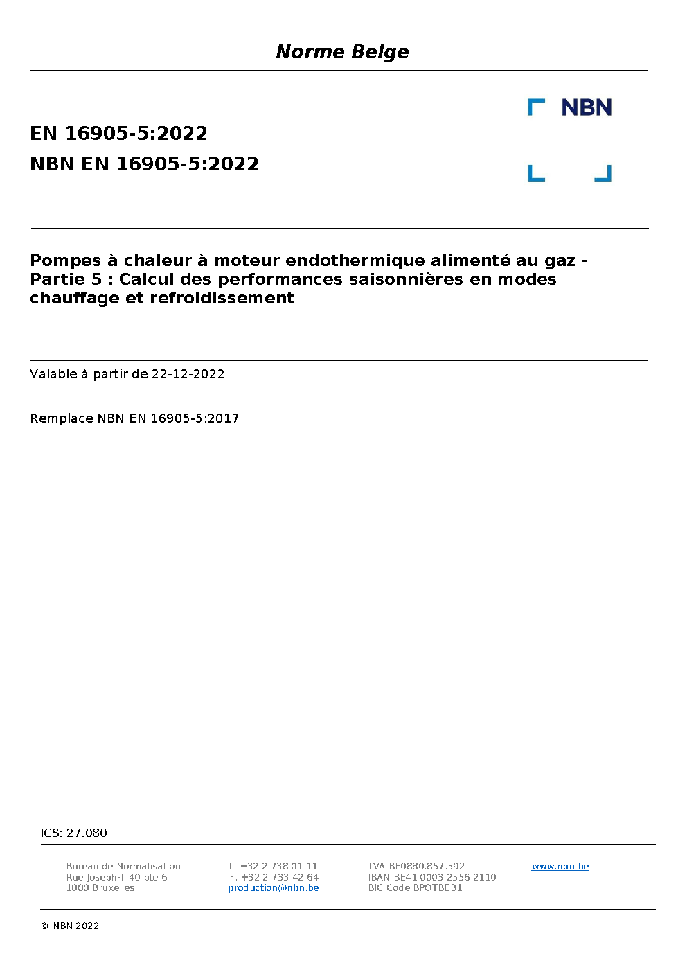 | Publisher | Bureau de Normalisation Belge (NBN) |