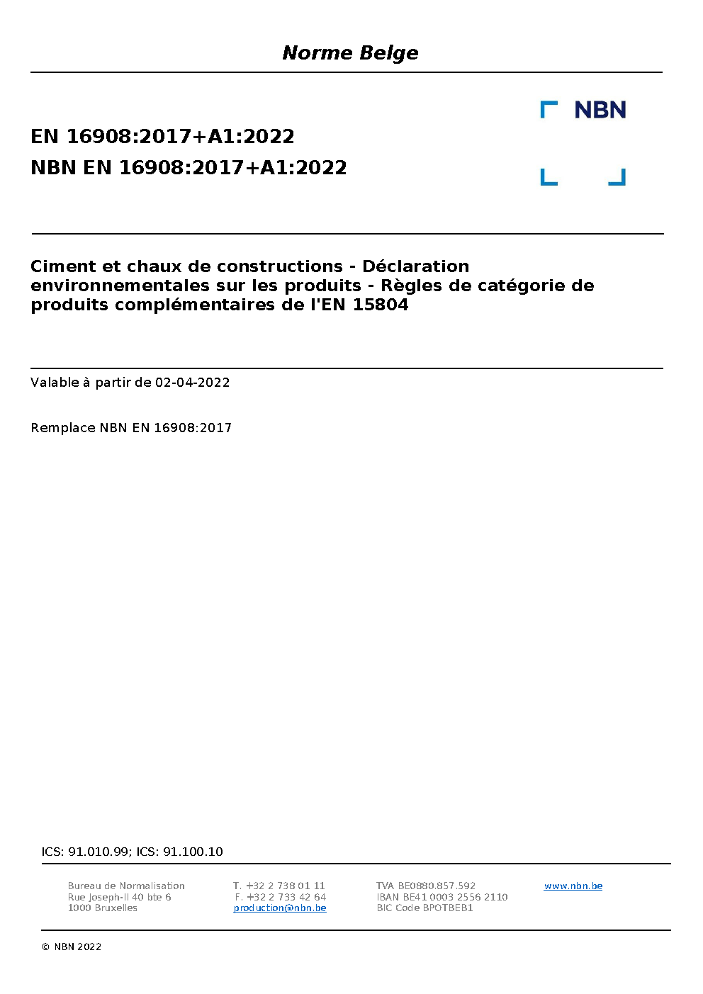 | Publisher | Bureau de Normalisation Belge (NBN) |