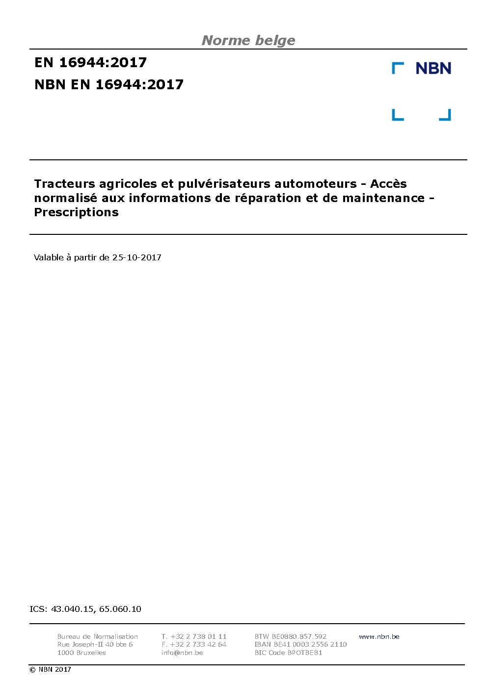 | Publisher | Bureau de Normalisation Belge (NBN) |