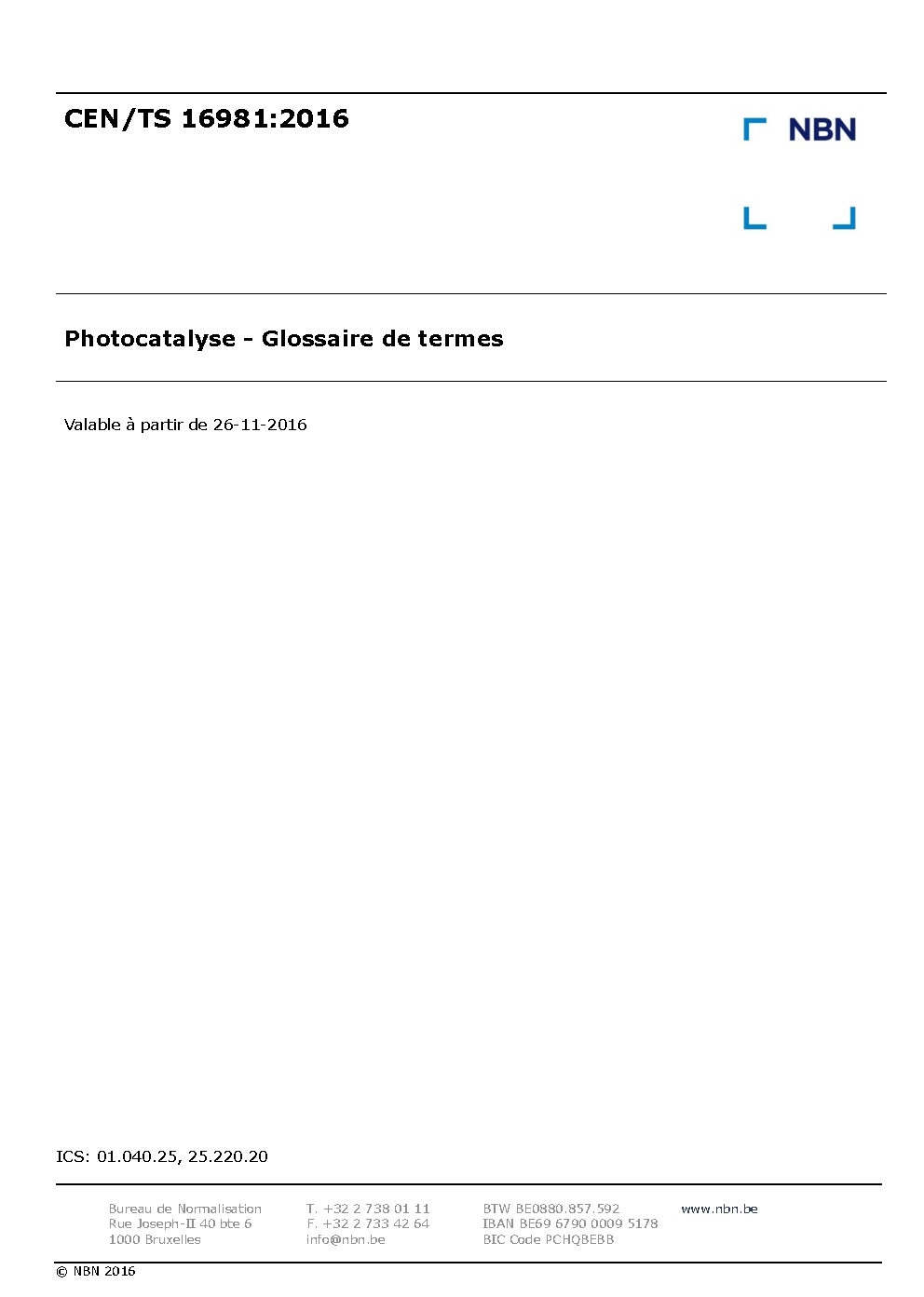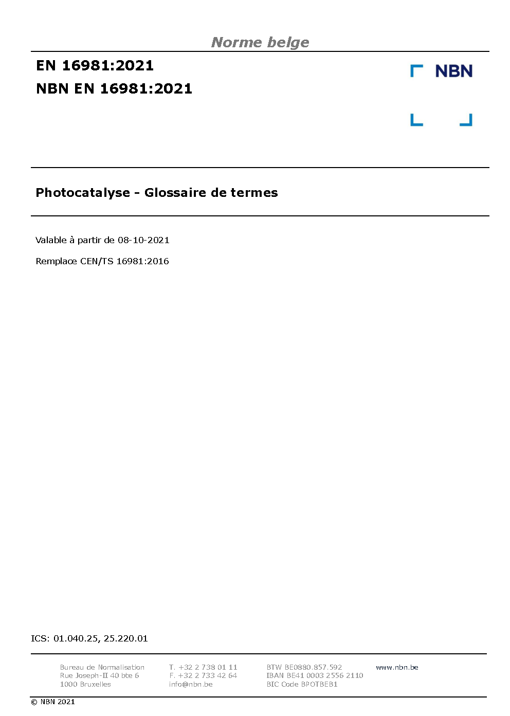 | Publisher | Bureau de Normalisation Belge (NBN) |