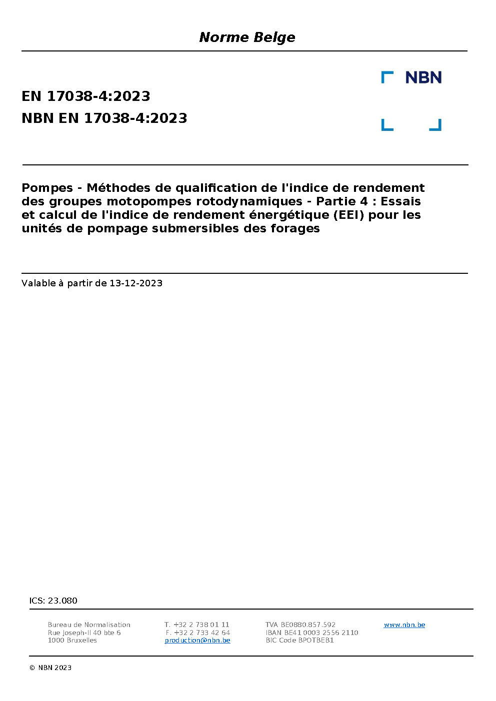 | Publisher | Bureau de Normalisation Belge (NBN) |