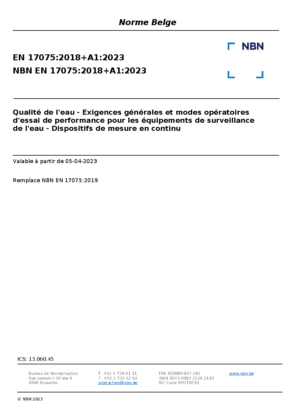 | Publisher | Bureau de Normalisation Belge (NBN) |