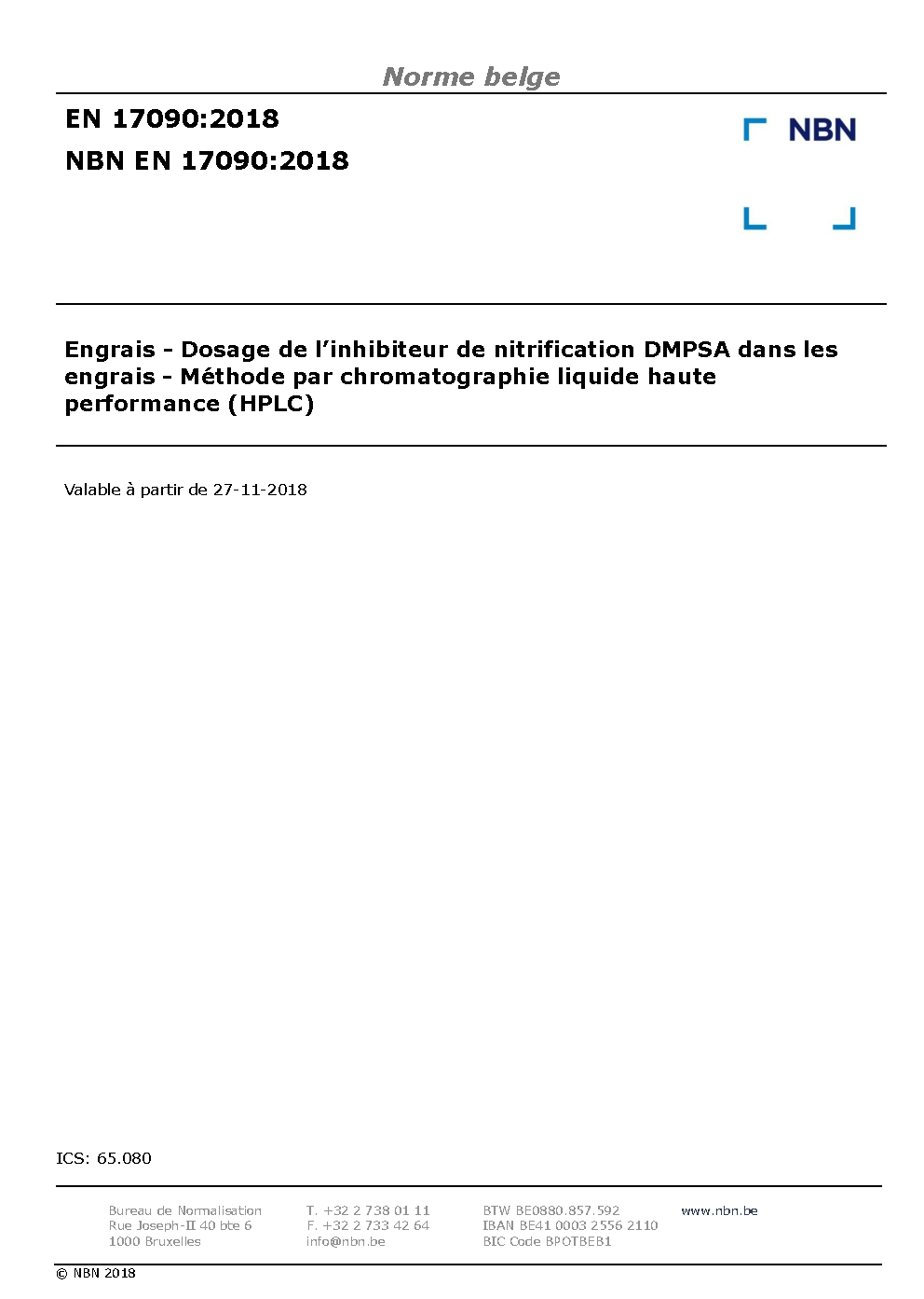 | Publisher | Bureau de Normalisation Belge (NBN) |