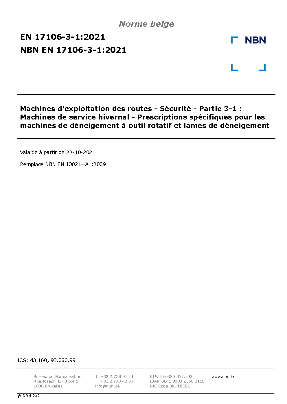 | Publisher | Bureau de Normalisation Belge (NBN) |