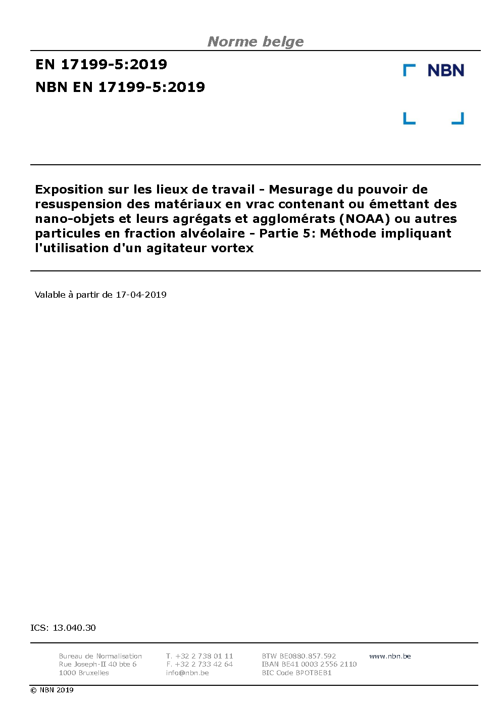 This document describes the methodology for measuring and characterizing the dustiness of bulk materials that contain or release respirable NOAA or other respirable particles, under standard and reproducible conditions and specifies for that purpose the vortex shaker method.