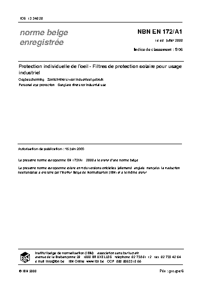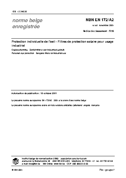 This European standard specifies the scale numbers, transmittances and related requirements for sunglare filters for industrial use. Other valid requirements for these types of filters are specified in EN 166.