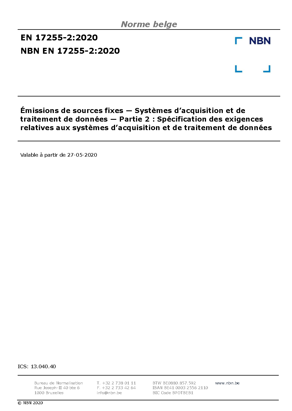 | Publisher | Bureau de Normalisation Belge (NBN) |