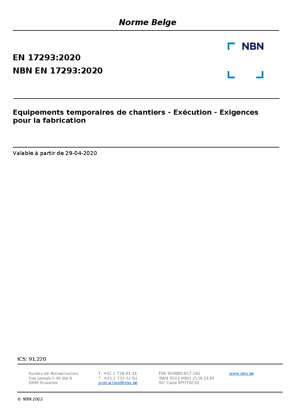 | Publisher | Bureau de Normalisation Belge (NBN) |