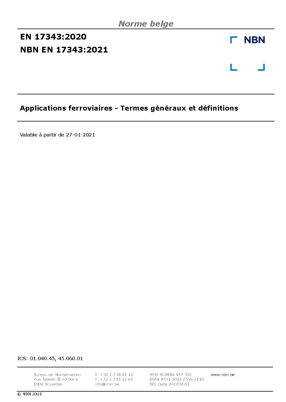 | Publisher | Bureau de Normalisation Belge (NBN) |