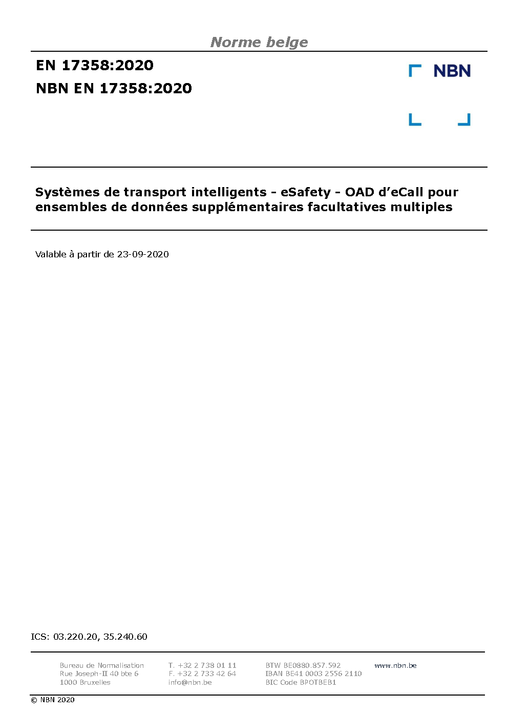 | Publisher | Bureau de Normalisation Belge (NBN) |