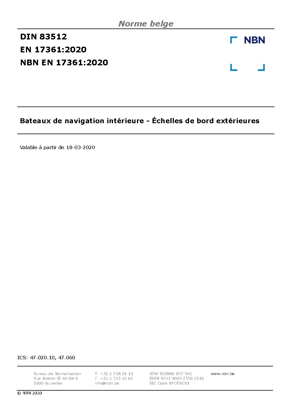 | Publisher | Bureau de Normalisation Belge (NBN) |