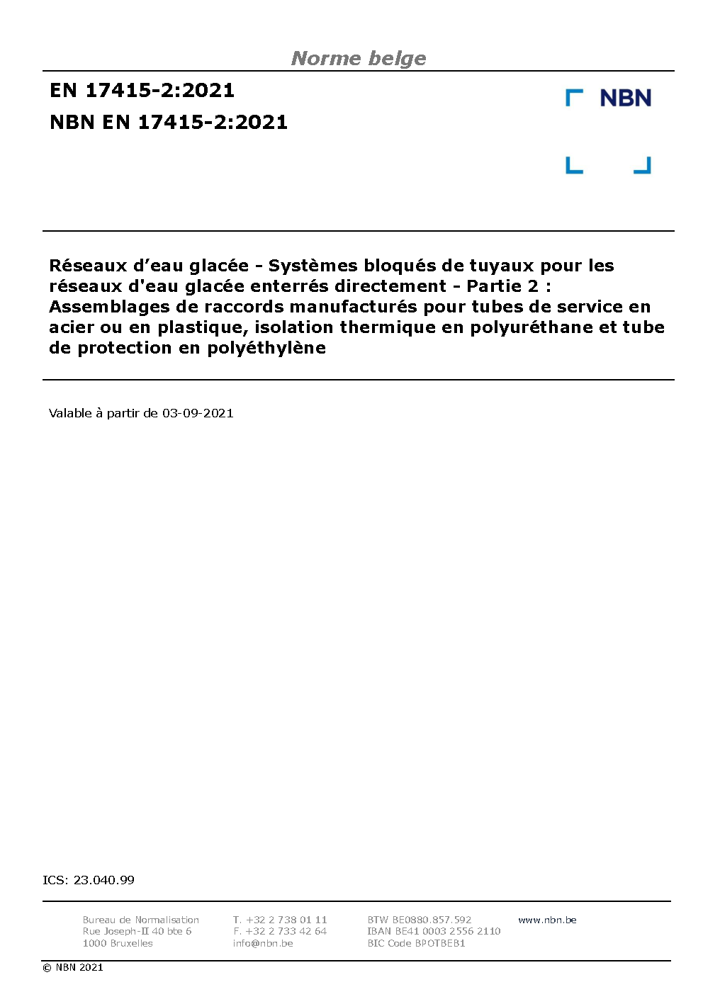 | Publisher | Bureau de Normalisation Belge (NBN) |