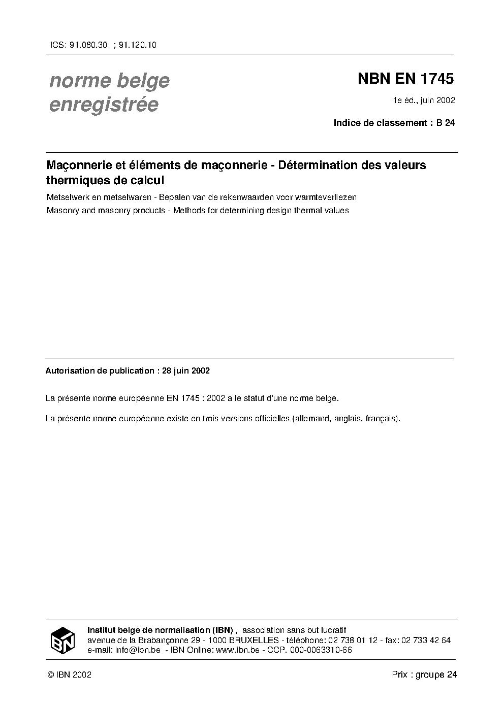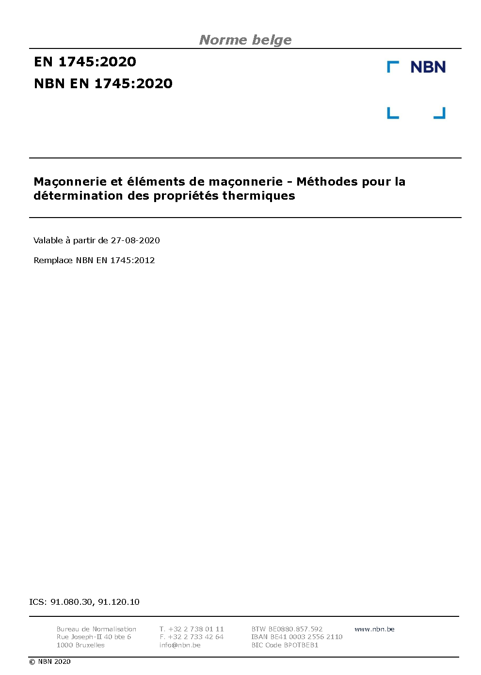| Publisher | Bureau de Normalisation Belge (NBN) |