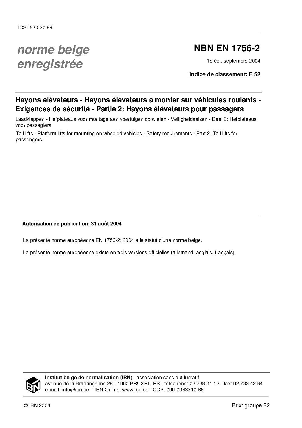 | Publisher | Bureau de Normalisation Belge (NBN) |