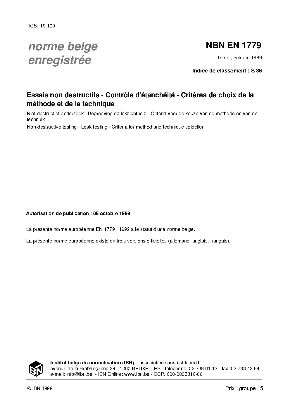 NBN EN 1779:1999
