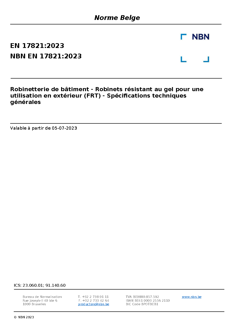 | Publisher | Bureau de Normalisation Belge (NBN) |