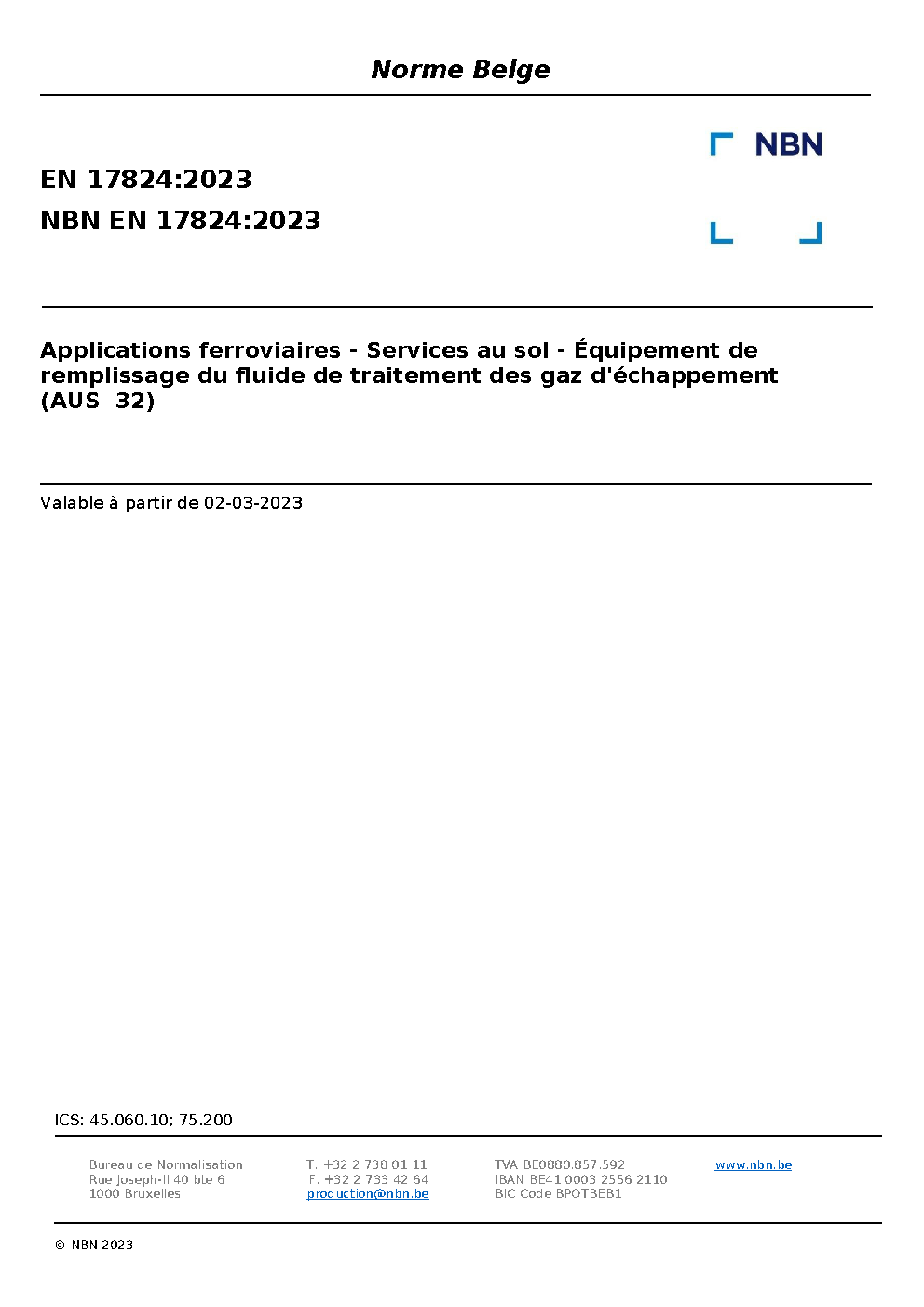 | Publisher | Bureau de Normalisation Belge (NBN) |