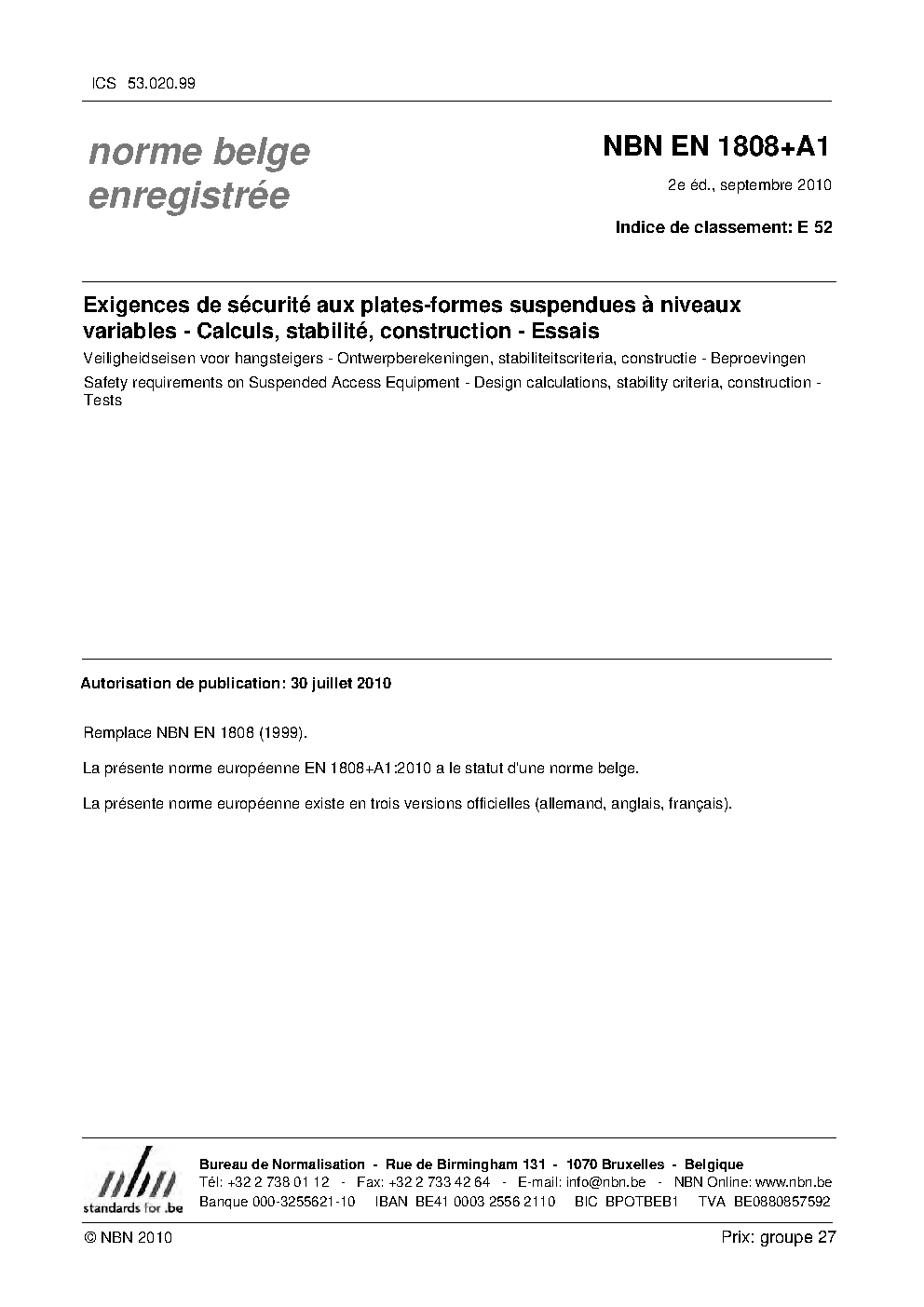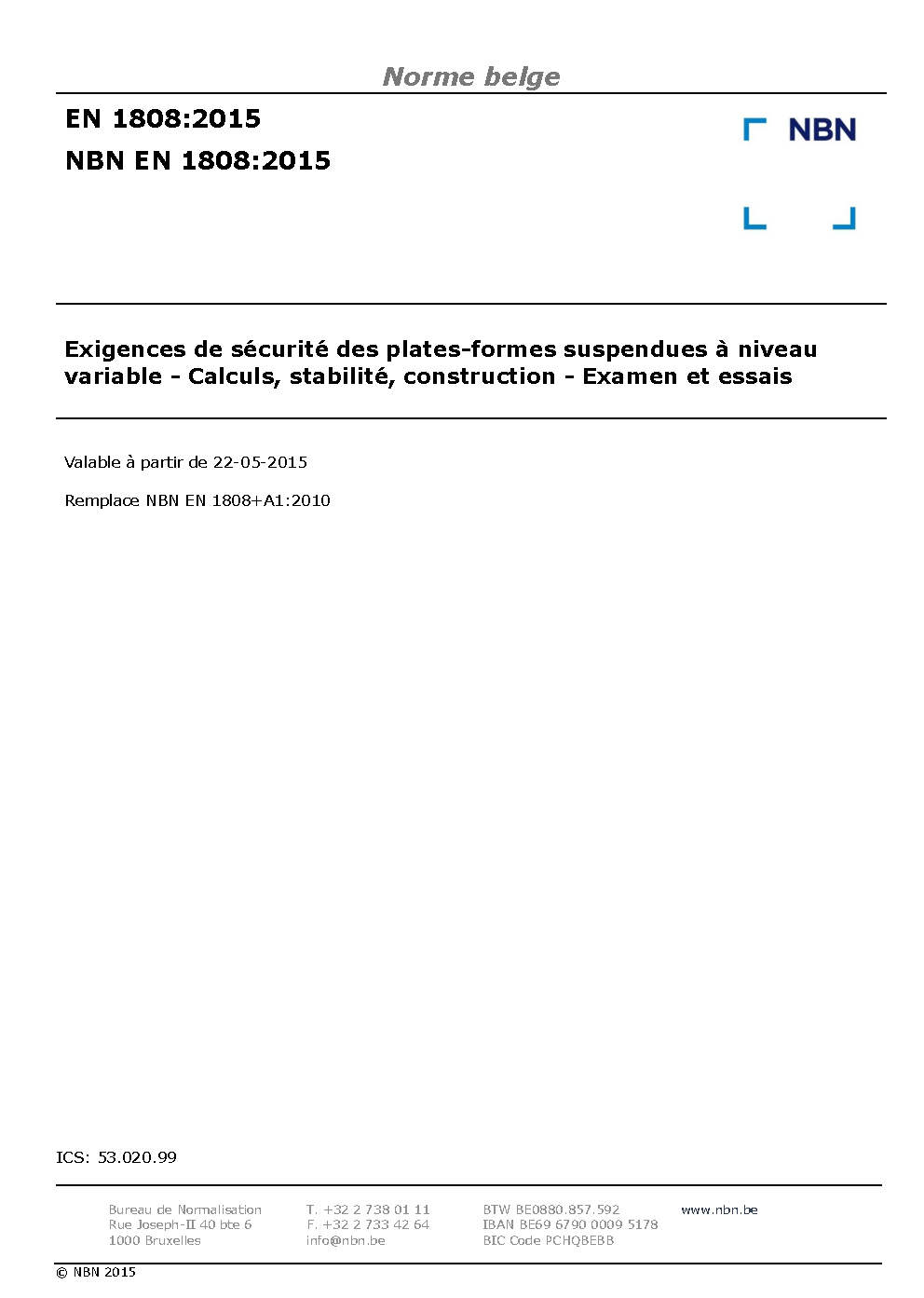 | Publisher | Bureau de Normalisation Belge (NBN) |